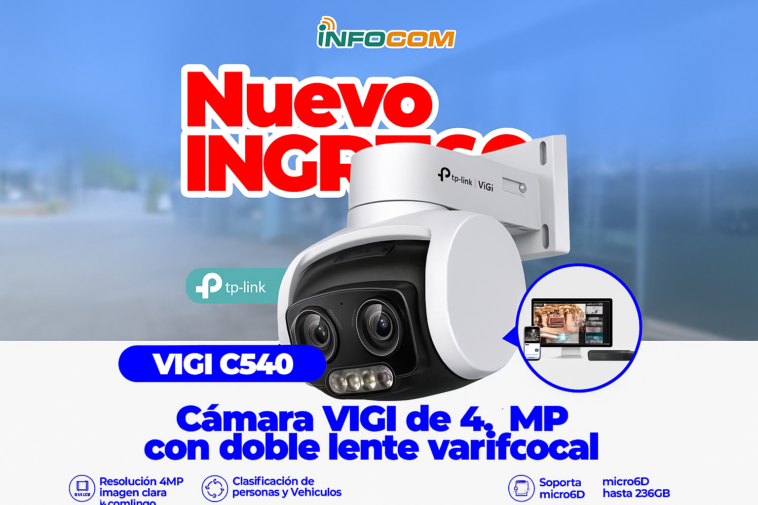 La reconocida serie profesional de videovigilancia VIGI de TP-Link ya está disponible en INFOCOM. Cámaras de alta definición, NVRs confiables y soluciones completas de seguridad diseñadas para negocios y hogares que buscan protección 24/7 con calidad y fácil gestión desde la app VIGI.
