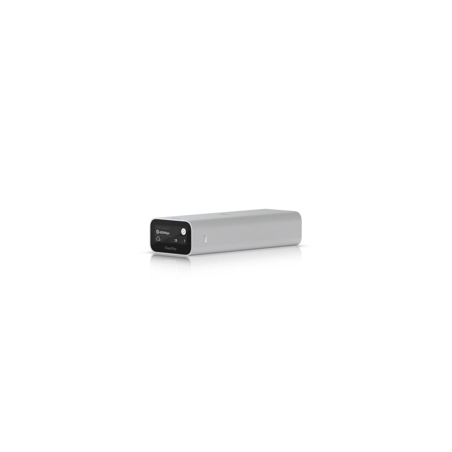 Consola de hardware compacta diseñada para gestionar y configurar de forma centralizada todo el ecosistema de red UniFi. Permite administrar hasta 50 dispositivos UniFi y 300 clientes. Incluye una pantalla frontal para visualización rápida de estadísticas del sistema y una batería integrada para un apagado seguro en caso de pérdida de energía. Se alimenta a través de PoE (802.3af) o mediante un adaptador USB-C compatible con Quick Charge 2.0/3.0.